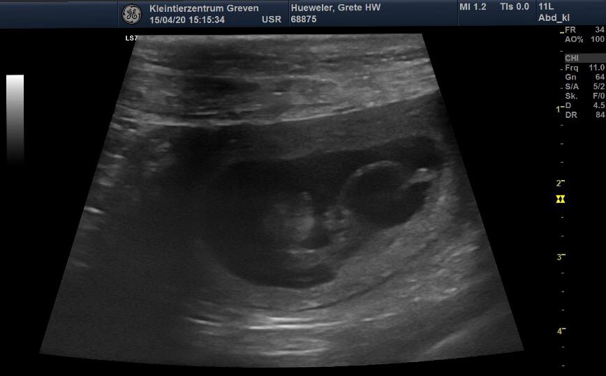 Juhuuu Grete ist trächtig. Wir freuen uns sehr. Es sind mehrere Fruchtanlagen zu erkennen. Die Welpen werden um den 20 Mai erwartet.