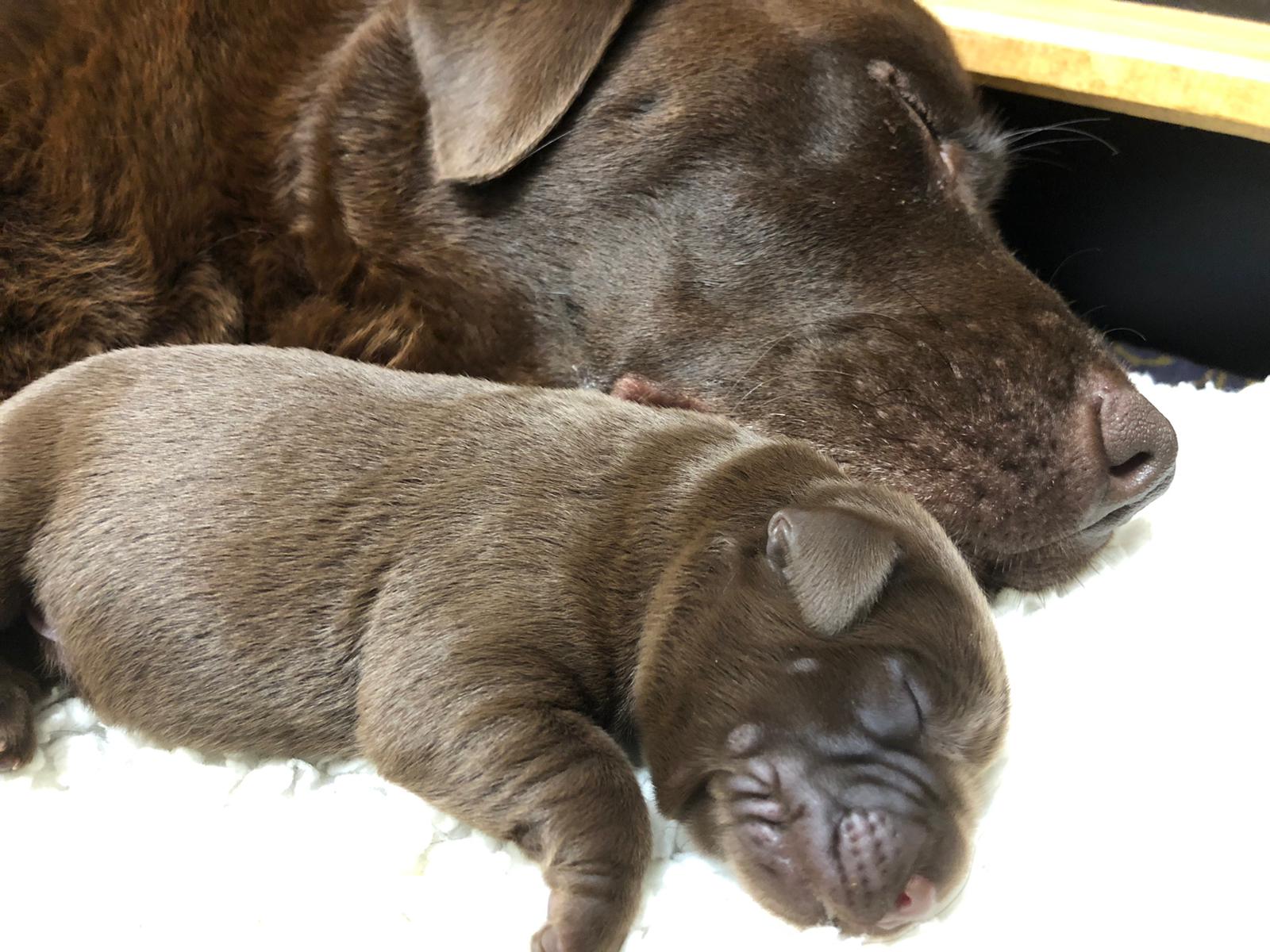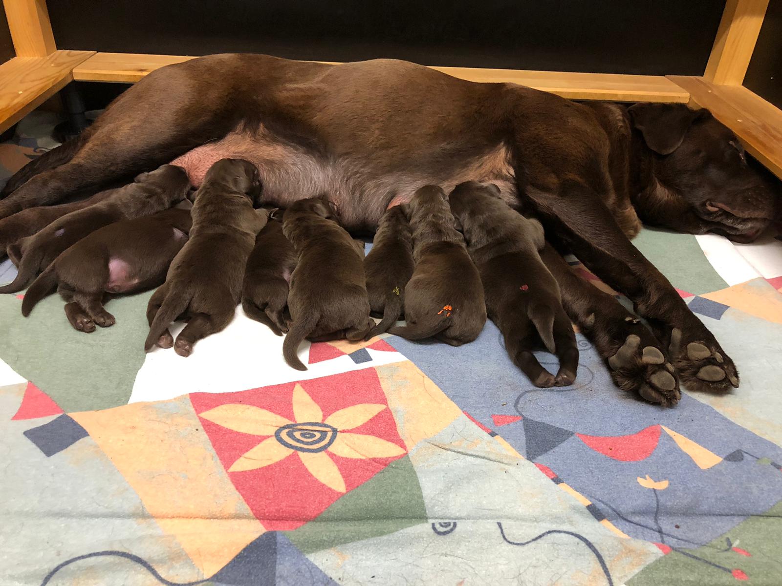 Carla hat heute 8 wunderschöne Welpen zur Weltgebracht. Sie kümmert sich gut und ist eine wundervolle Mutter.
